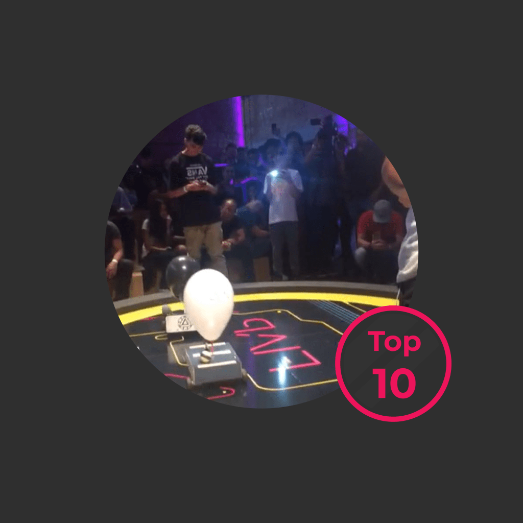 Competição de robótica, na qual o objetivo era criar um robô completo, desde sua estrutura até sua programação, utilizando armas ativadas por sensores de impacto e movimento para estourar o balão do oponente. Essa experiência proporcionou um ambiente empolgante para aplicar conhecimentos técnicos e habilidades práticas na criação de robôs multifuncionais.